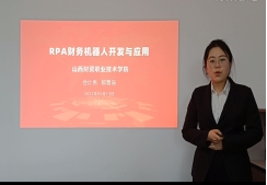 线上职业体验,展现学生风采。会计技能协会会长郁景辰同学扮演财务经理,模拟企业实际情况,对企业遇到的实际困难,进行剖析,并通过RPA财务机器人开发与应用解决企业遇到的困境,充分展示了学生职业技能。