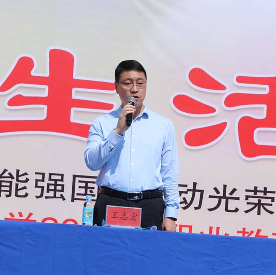 吉县县委常委、政府副县长王志宏庄严宣布——吉县职业中学“技能,让生活更美好”职教活动周开幕!