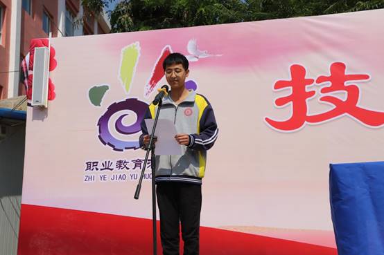 83班学生郭帅作为学生代表发言。“技能改变命运,职业成就未来。同学们要以职业教育活动周为契机,珍惜宝贵时光,跟上时代步伐,增技强能,苦练本领,真正成为一名思想成熟,知识扎实,技术纯熟的优秀人才。”