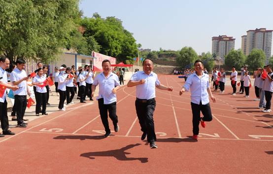百米跑道上,王智勇校长和老师们褪去了平时的严肃,摩拳擦掌,跃跃欲试,在这一刻,他们充满着青春的活力;起跑线上,他们蓄势待发,起跑、加速、超越、冲刺,这一刻他们“超帅”!
