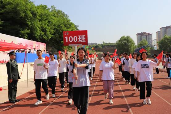 全体师生列队整齐,精神抖擞,容光焕发,迈着慷锵有力的步伐,喊着响遏行云的口号,气势昂扬的走过主席台,他们饱满的热情和奋进的姿态迎接职业教育活动周的到来。