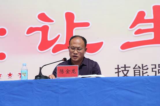 教科局副局长陈金龙在讲话中,对我校一年来去得成绩作出充分肯定,勉励我校师生以新修订的职业教育法施行为契机,坚持以服务地方经济社会发展为己任,科学谋划,创新发展,协同配合、同向发力,进一步深化产教融合、校企合作,深入推进育人方式、办学模式改革,精心培育特色职教品牌,加快建设一批特色骨干专业群,形成支撑地方经济社会发展的职教高地,为服务好地方产业经济发展,培养更多高素质高技术人才。