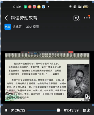 耕读劳动教育理论课在劳动周如期开展。老师们深入浅出的就如何辛勤劳动和诚实劳动进行了别开生面的讲座,同学们听得津津有味。徐林芸副教授给学生们讲解了如何做新时代的劳动践行者;林琳副教授给学生们介绍了中华儿女自强不息,用劳动创造了生活、创造了灿烂文化的场景;张雷副教授给学生们介绍了诚实劳动的时代价值;侯林洁讲师给学生们深层次剖析了诚信的定义;吕树强讲师给学生们讲解了如何做一位诚实劳动的践行者。