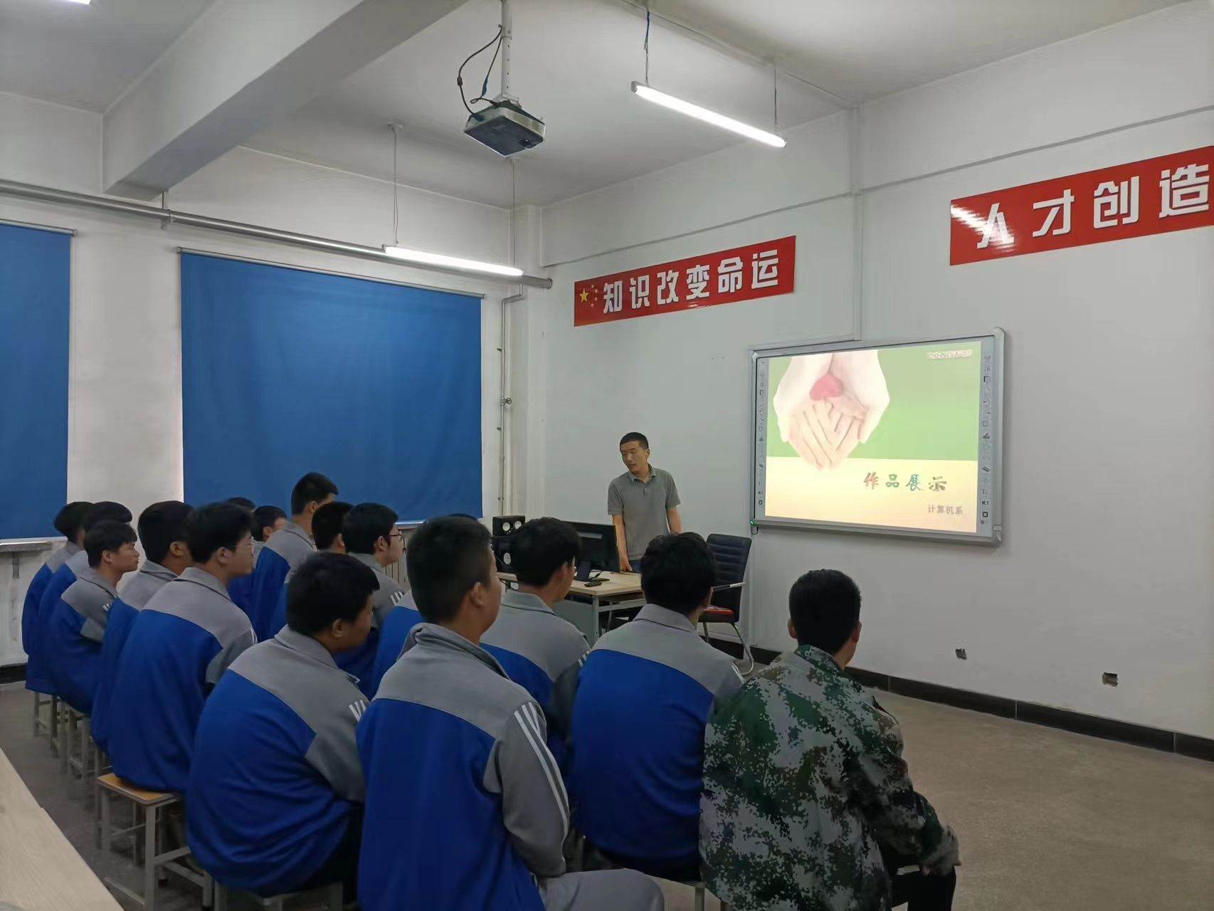 5月23日,计算机系在实训楼四层办公设备实训室进行了学生技能训练作品展示。通过PPT向同学们展示了动画片制作、图文混排、电子表格、投影片制作、CorelDRAW、影视后期制作等项目的学生优秀作品。白碧泉老师通过作品展示和讲解,促进师生之间的交流沟通,鼓励学生积极学习技能,形成自己独特风格,通过直播让家长、其他教师和学生了解技能掌握程度,提升学生的自信心和获得成就感,提高学生们对计算机专业课程学习的热情。