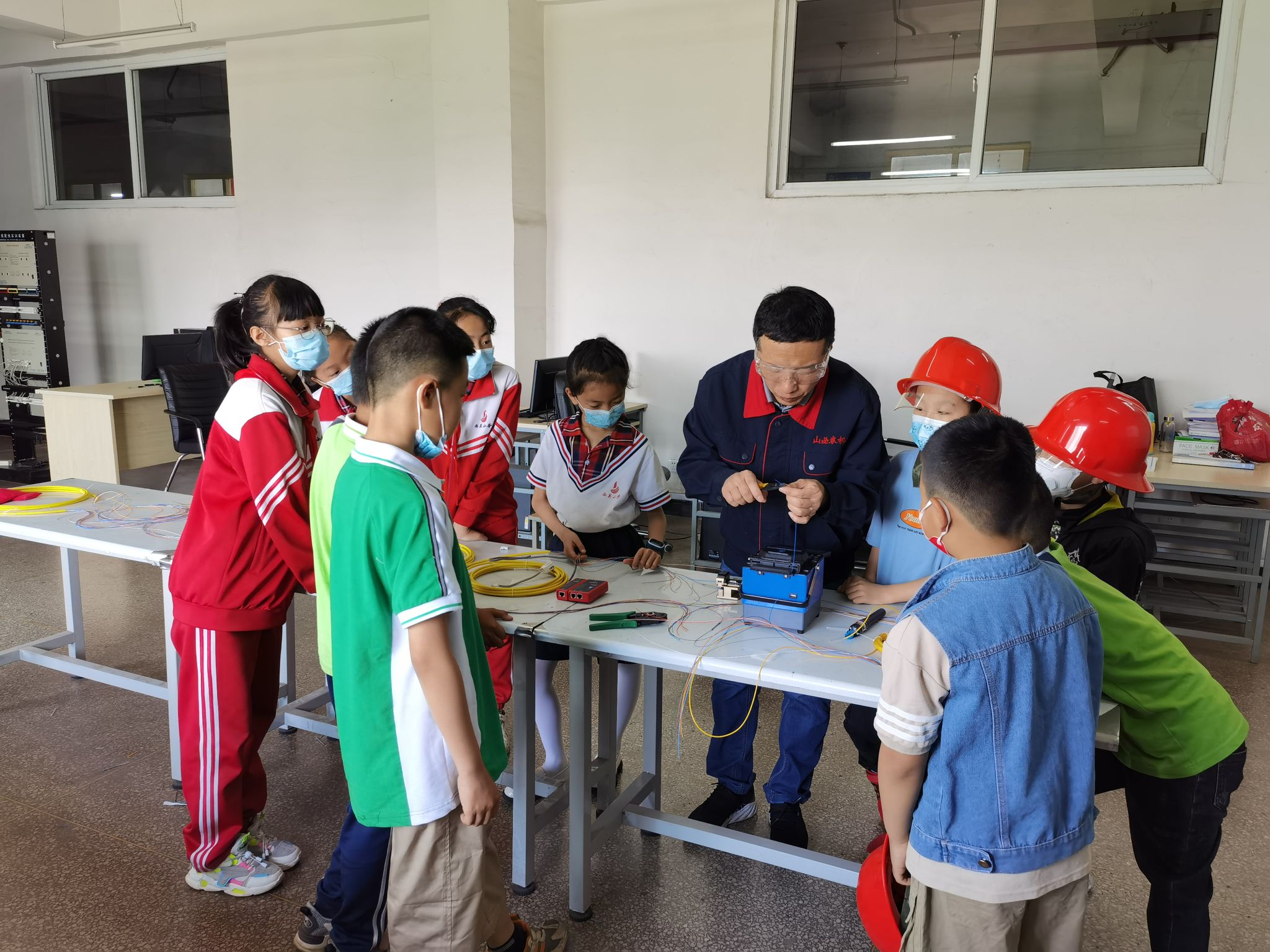 5月21日,计算机系在实训楼四层网络布线实训室开展“我是小小工程师”职业体验活动。开展职业体验教育是推动职业教育资源面向基础教育开放,提升中小学综合实践活动课程、劳动与技术课程学习实施水平,促进普职融通,深入实施素质教育的重要途径。本次职业体验活动让中小学生体验通信工程师铺设安装通信线路,使用不同种类线缆连接数据通信设备,保证通信设备与外部通信网络连接等工作。在充分体验过程中培养中小学生正确的劳动价值观和良好的劳动品质。