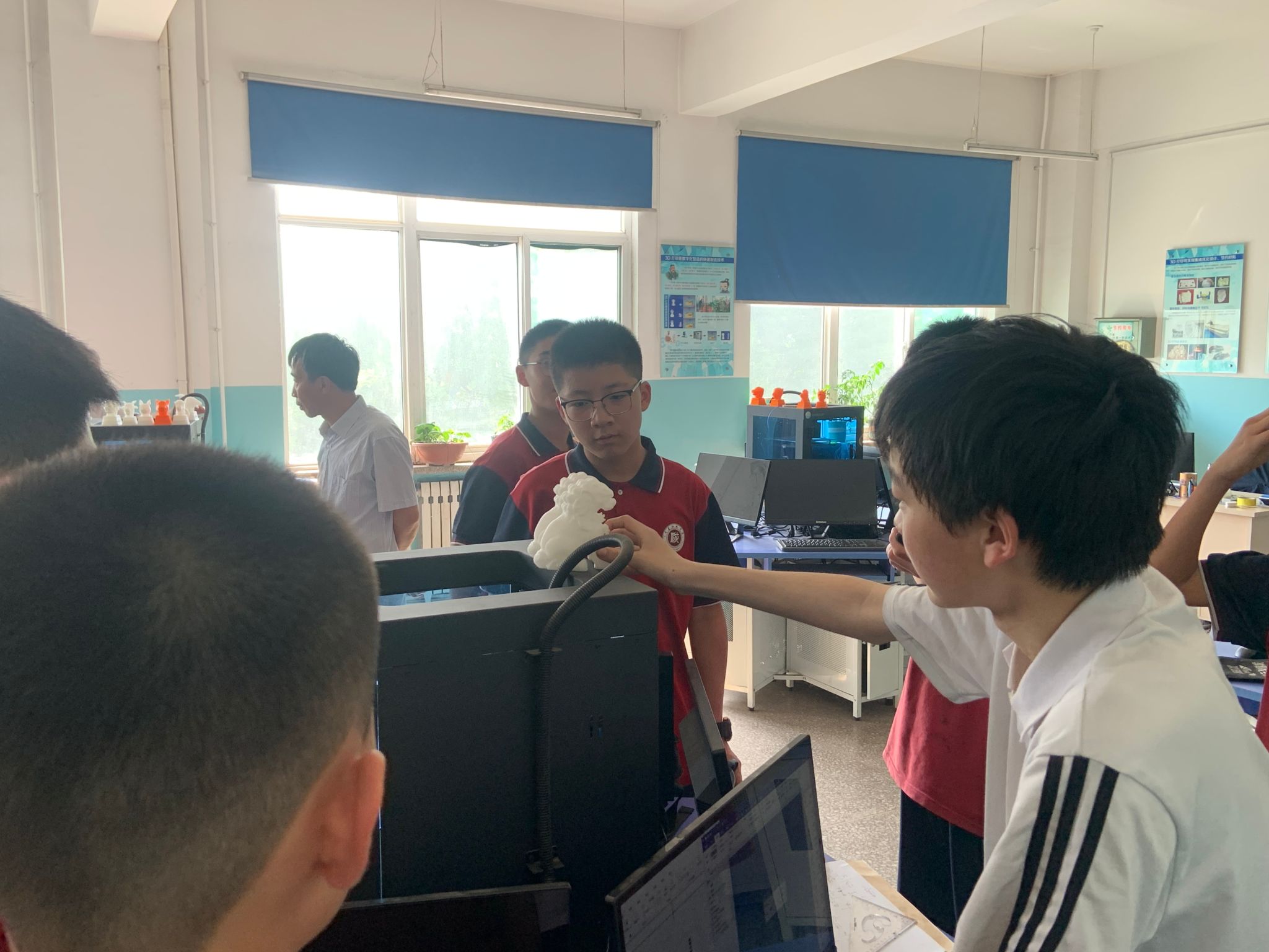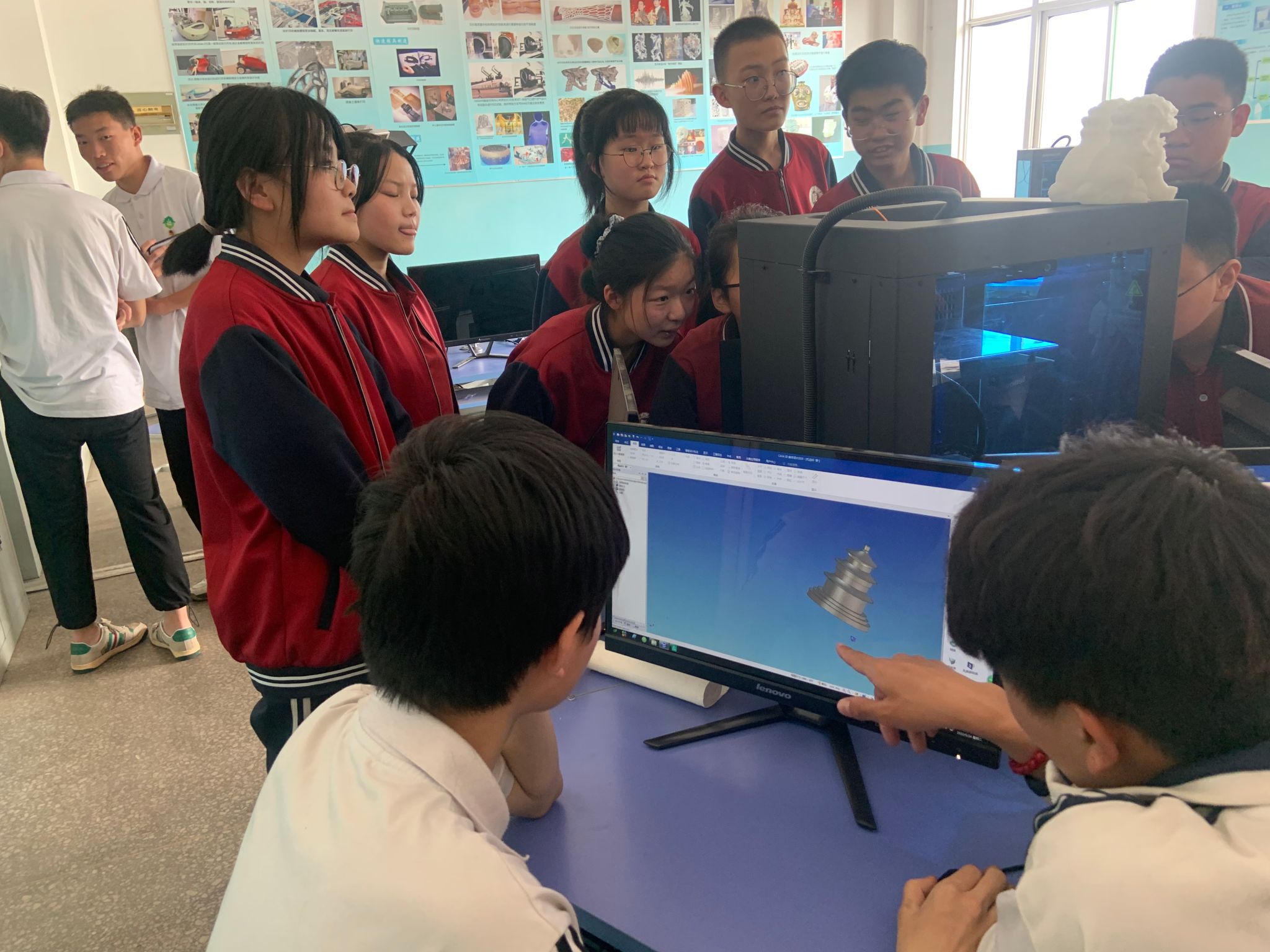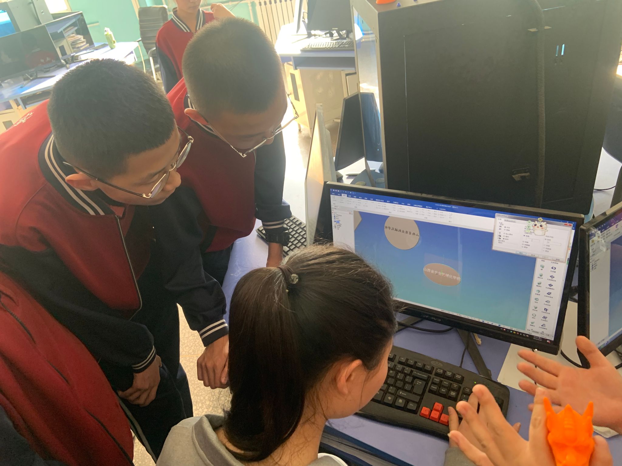 5月24日下午,机械系职教周活动在3D打印一体化实验室进行。本次展演项目的流程是:了解3D打印技术、打印刻字、展示动画、展示渲染功能共四部分,观演的人群是和诚初中生。首先,王丽萍老师和郭晓飞老师带领同学们通过大屏幕了解3D打印技术的发展及应用,同学们认真观看,对新材料技术的发展充满了好奇。王丽萍老师讲解实现3D打印的两种方式:一种是从无到有,通过在电脑上进行模型设计打印出来,以打印成品龙首为例的十二兽首属于模型打印;另一种是通过扫描仪扫描已有的物体,将其打印出来,以实物轴承座为例属于扫描打印。同学们仔细听讲,认真观察正在运行的打印机。然后,同学们分组展示,有的同学通过校名挂件的打印展示打印刻字功能,有的同学通过小球弹跳动画展示动画功能,有的同学通过添加贴图、光影达到渲染功能,有的同学通过绘制天坛进行模型设计,围观的学生们时不时与正在打印的同学们互动交流,整个课堂氛围轻松、愉快!最后,参观的同学们兴致勃勃的体验了打印刻字,期间同学们互相交流、探讨,进一步提高了对3D打印技术的学习热情。在校领导、系主任的关心下,在王丽萍老师的认真讲解和郭晓飞老师的耐心辅导下,师生共同顺利完成了技能展演项目。通过这次技能展演,同学们不仅巩固了理论知识,而且更熟练地掌握了3D打印技术,进一步激发了同学们的学习热情,培养了同学们的创新能力。