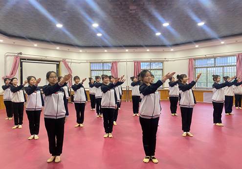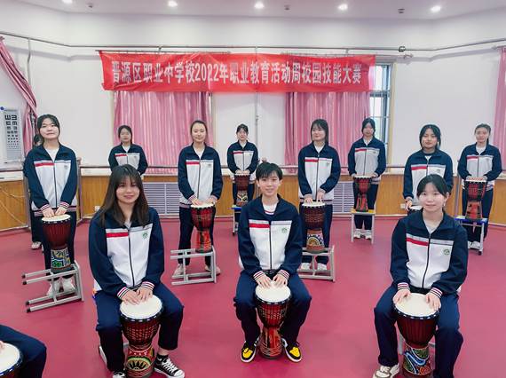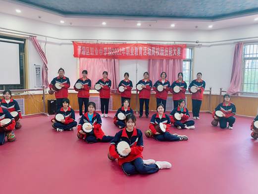 “技能、让生活更美好”,突出我校自己的办学特色,丰富我们的校园艺术课堂,为更好地落实素质教育的指导思想,做了大量的工作。首先我们从学生的课堂抓起,组织排练大型的手鼓表演活动,融体育锻炼和艺术表演与一体,既突出了身体锻炼,又培养了学生艺术表演能力,尤其是在表演过程中,学生之间的位置变换,动作配合,增强了学生的团队意识和协作精神,为学生能力和素质的提升,奠定了坚实的基础。