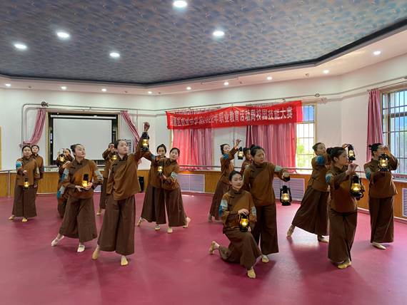 开展职业技能竞赛在培养综合素质人才方面具有积极的作用。本次大赛是校内技能竞赛,促进班与班之间的激烈角逐,全方面考核学生的综合业务能力,必将进一步激发广大职教师生练技增能的积极性。参赛选手学习交流、切磋技艺,赛出风格、赛出水平,充分展现当代职教师生的精湛技艺和良好的精神风貌。我们从乘务礼仪、舞蹈、乐器、工艺美术、等几方面对学生进行技能评比。