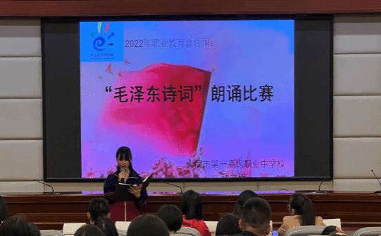为配合职教周活动,深入实施素质教育,创建良好的校园文化,营造浓郁的读书氛围,5月26日下午在我校五楼会议室,语文组举办了学校诗词朗诵比赛,活动主题为“党史咏颂,精神永弘----毛泽东诗词朗诵”,讴歌一代伟人的光辉一生,弘扬革命精神,增进学生对毛泽东诗词和中国优秀传统文化的了解与认识,提升学生综合素质,树立报国志和爱国情。同学们积极参与,语音清晰,抑扬顿挫,情感丰富,极具感染力。