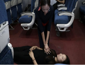 医疗救护模块主要完成的是心肺复苏及止血包扎的训练。急救并不单单是医生的事,特别是在民航航班中往往缺乏专业的医疗技术人员参与。在这种情况下,民航服务人员只有学习过应急救护知识培训,才能在关键时刻为旅客做好现场急救,给专业的医护人员赢得宝贵的时间。在遇见危险时能冷静面对,在面对紧急情况时能够及时进行有效处理,挽救自己或他人的生命,或是把伤害降到最小,将损失危险最低化。因此,掌握一定的急救原则和沟通技巧尤为重要。