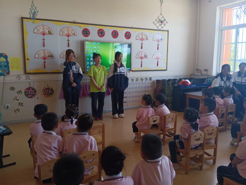 最后学生们通过舞蹈、唱歌、讲故事等实践活动和本班幼儿进行了互动。