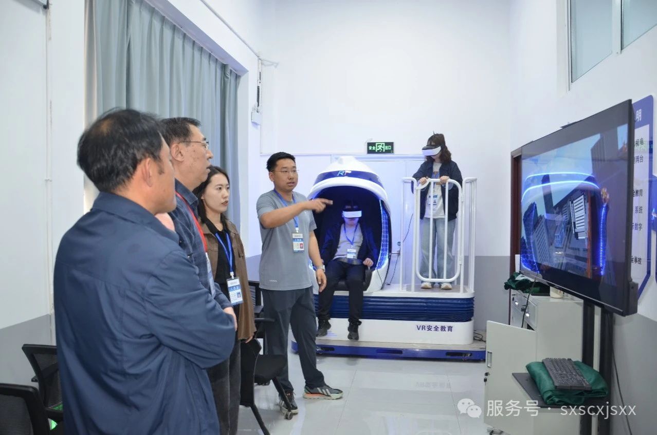 有序分组参观:四大小组按定制路线依次体验,从工位实操到虚拟仿真,全方位了解学校实训教学体系。