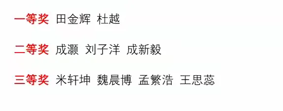 群英荟萃,高手过招,经过激烈角逐,产生了一等奖2名,二等奖3名,三等奖4名。