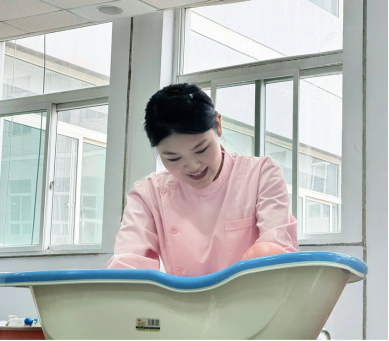 在操作时她会用温柔的语气与专业的技术完美融合在婴儿沐浴操作中,她腕部试水温的动作宛如艺术——手腕内侧轻触水面,温度计显示38℃的瞬间,她嘴角微扬。洗澡时,左手始终护住宝宝后颈,右手用小毛巾轻柔擦拭褶皱部位。“她洗的不是澡,是安全感。”
