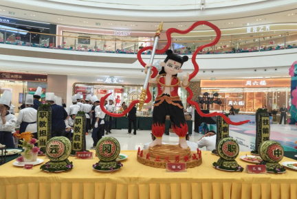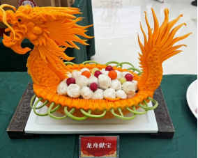 活动现场设置了专业展示区、作品展示区和互动体验区。面点作品包括传统花馍、象形酥点等创意面点,热菜展示区呈现了龙舟献宝、鱼跃龙门等精美菜品,雕刻作品"龙腾盛世"和"哪吒"更是吸引了众多观众驻足。