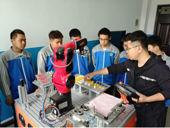 在实操环节,同学们在郭老师的指导下,分组进行工业机器人的操作实践。大家积极动手,认真调试程序,尝试让机器人完成各种任务,如物料搬运、装配等。