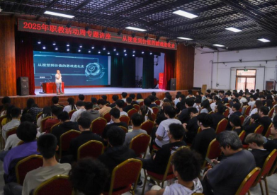 5月12日上午,山西信息职业技术学院艺术设计与传媒系2025年职业教育活动周系列活动之“从视觉到价值的游戏进化史”专题讲座在学院会议中心举行。游戏行业知名专家贾俊亮受邀担任主讲人,动漫制作类专业师生200余人参与活动。