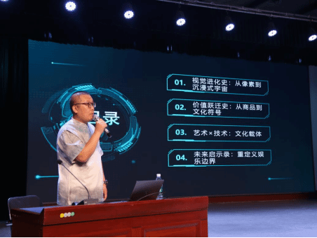 讲座以游戏产业发展历程为主线,围绕视觉技术革新、社会价值升级、艺术与技术融合、未来趋势展望四大维度展开。专家通过解析《赛博朋克2077》《原神》等国内外典型案例,指出“技术迭代是产业发展的基石,而文化赋能是突破天花板的密钥”。针对AI技术冲击,他强调:“工具进化淘汰的是重复劳动,但叙事创意、情感化设计等核心能力始终稀缺。”
