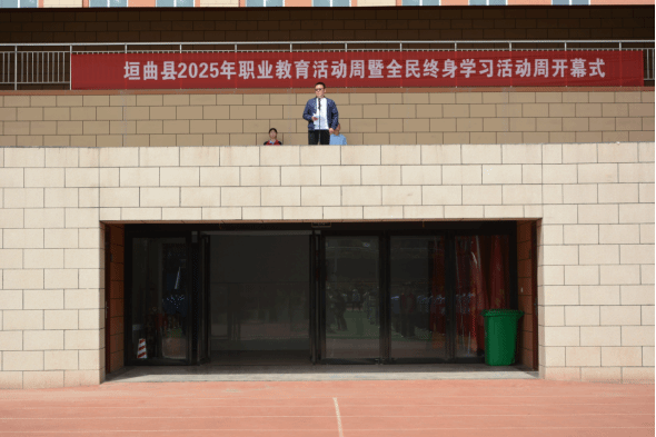在雄壮的国歌声中,启动仪式拉开了帷幕。职业中学副校长王建军发表了讲话。他讲,根据教育部2025年职业教育活动周、全民终身学习活动周相关工作要求,我校将在活动周期间举办特色活动日,重点举办职教人说职教事、学习之星说学习等特色活动,并在活动周专题网站进行集中展示。通过职业体验活动、课标考试、教职工参观校史馆、大国工匠进校园、运动会、英语单词大赛等活动,积极宣讲《国家职业教育改革实施方案》以及省、市、县大力发展职业教育的新政策、新举措,凝聚全社会宣传职业教育改革发展成果的力量,充分展示现代职业教育特色与魅力,大幅度提升学生、家长对我县职业教育的关注度,进一步增强广大人民群众对全县职业教育高质量发展的自信心努力构建支持职业教育高质量发展的良好格局。