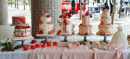 文化广场的西点裱花区飘来阵阵奶香,学生们在教师指导下学习使用裱花袋。尽管手法生疏,但一朵朵奶油玫瑰、一个个卡通造型渐渐在蛋糕胚上绽放。"原来要这样转着挤,力道要均匀。"王同学专注地调整着手势,最终完成的迷你蛋糕让她爱不释手。