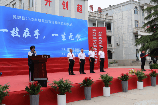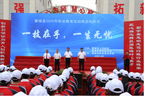 五月的风,吹来了劳动的赞歌;五月的阳光,照亮了技能的舞台。5月13日上午8:30,翼城县2025年职业教育活动周启动仪式在县职业技术学校举行,今年的活动主题是“一技在手,一生无忧”。县教育体育局主任科员杨金钟、工会主席综合股股长白瑾祥、综合股副股长宋兆辉、县职业技术学校校长李国红及全体师生和部分家长参加了启动仪式。