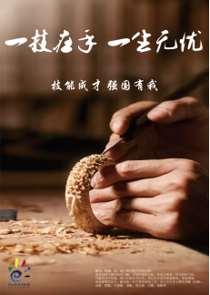 踏入计算机专业教室,创作热情扑面而来。围绕“一技在手,一生无忧”,同学们熟练运用PS、AI等专业软件,将职业教育的内核熔铸于数字艺术之中。有人依托大数据捕捉行业前沿趋势,以电商直播、智能制造的动态场景,凸显技能创造价值的无限可能;有人借助3D建模技术,将扳手、代码、厨具等元素立体呈现,诠释不同领域技能点亮未来的深刻寓意。科技蓝与活力橙交织的色调,经在线调色工具精准配比,直观传递“一技傍身、前程似锦”的坚定信念。