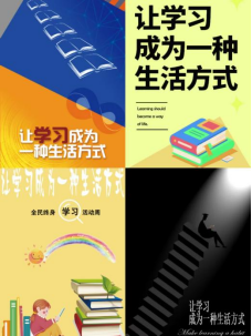 “让学习成为一种习惯”主题创作区亮点迭出,创作者们以矢量绘图勾勒书籍、灯泡等学习元素赋予静态画面灵动气韵,并融入动态设计让“学习永不止步”标语鲜活跃动;在创意表达上,他们多向汲取灵感,有的借鉴明快色彩与几何图形以鲜艳色块搭建“知识魔方”立体展现学科多元性,有的以书籍为核心意象将其化作时光隧道串联古今学习场景诠释学习传统的传承脉络,还有的参照光影艺术以黑色为底、聚光灯勾勒攀登知识阶梯的学子剪影营造希望盎然的学习意境,这些融合全球前沿设计语言的作品让传统学习理念在现代创意中焕发新生,以多元视角完美诠释了学习的独特魅力。
