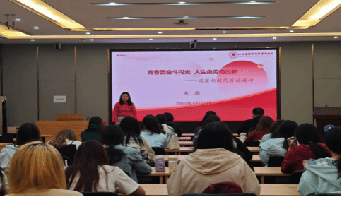 马克思主义学院教师宋莉则以“青春因奋斗闪光 人生由劳动出彩”为题,深入解析劳动精神的科学内涵和时代价值:“劳动精神,是从千千万万劳动群众身上提炼和升华出来的精神品质,具有普遍性、广泛性和基础性。”她从“三个关乎”展开解读,通过“全国劳模罗昭强”“国产机器人天工Ultra”等鲜活案例,诠释劳动精神与强国使命的深刻联结,并寄语学生:“要在辛勤劳动、诚实劳动、创造性劳动中托举中国梦,成就复兴梦。”