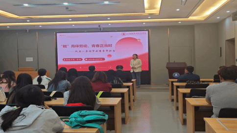 活动打破传统课堂边界,构建“专业+思政”的立体化教学场景。财税学院教师张婧以“‘税’月伴劳动,青春正当时”为题,从税收视角切入劳动价值:“每一份劳动创造的价值,都通过税收转化为社会发展的‘阳光雨露’——从铺设高铁铁路,到建设神舟飞船,税收既是劳动成果的‘守护者’,更是青春报国的‘接力棒’。”她结合个体工商户与有限责任公司纳税对比案例,引导学生理解“劳动—财富—税收—民生”的闭环逻辑,强调“用诚实劳动铸就人生价值,以守法纳税共筑强国根基!”。
