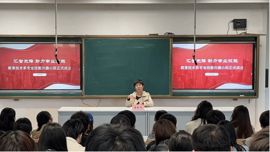 为深化专业人才培养,搭建学生互助成长平台,教育技术系正式成立“专业技能兴趣小组”,并邀请大同大学优秀学子分享经验,明确培养路径。该小组通过选拔课堂表现优异、具有专业潜力与实践能力的在校生,着力打造“以赛促学、以践促能”的成长共同体。