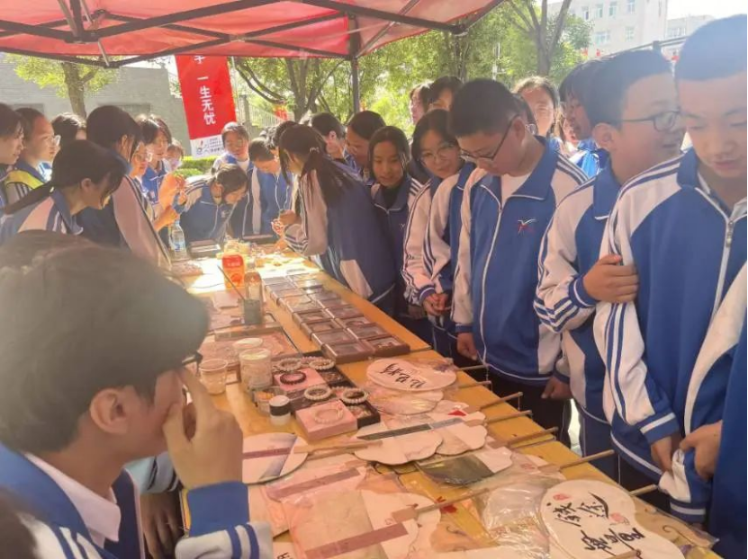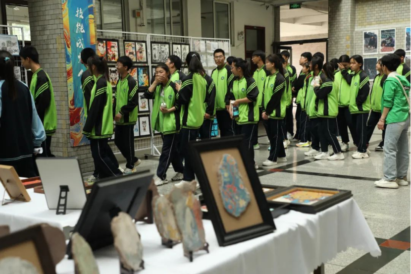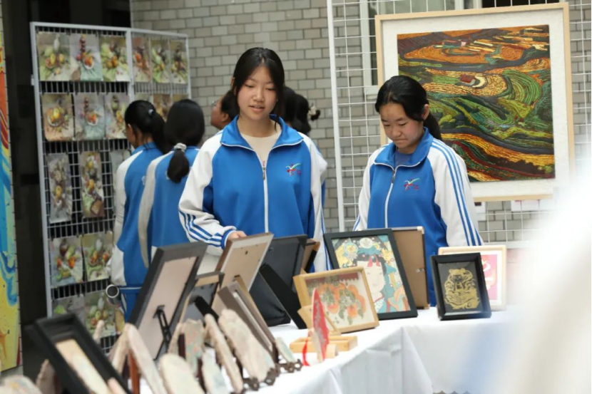 在这里,陶艺、彩塑、漆艺、壁画等传统工艺以动态展示的形式焕发出全新活力。彩塑区的学生正用巧手捏制着栩栩如生的人物,引得前来体验的学生连连拍照。"学生创意市集"更是人气爆棚,展出的百余件作品深受大家喜欢。