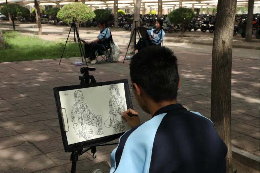 在职教周活动期间,美术系一年级学子以笔为媒,开展了一场别开生面的艺术创作盛宴。速写区的同学用流畅的线条捕捉校园美景;书法组的学生挥毫泼墨,在宣纸上书写青春誓言;动漫画工作台前,创意与想象力碰撞出一个个鲜活角色;儿童卡通画小组则用明快色彩编织纯真童趣。户外写生更是成为亮点,学生们背着画架散落在校园各处,将平遥现代的一砖一瓦、一草一木化作纸上风景。这些充满朝气的作品不仅展现了扎实的专业基础,更彰显了00后艺术学子对美的独特感悟。