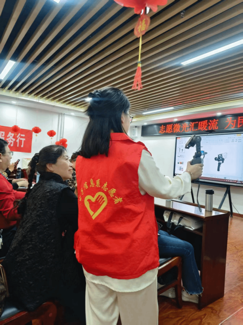 活动中,一个温馨的细节令人动容:一位独居老人张奶奶提到想为远方的孙子录制生日祝福视频,但因操作不熟练始终未能完成。志愿者小王不仅耐心教她调整拍摄角度、添加字幕和背景音乐,还帮她录制了一条充满温情的祝福视频。张奶奶眼眶湿润地说:“孩子们工作忙,很少回家,今天学会了这个,以后就能经常给他们发视频了!”
