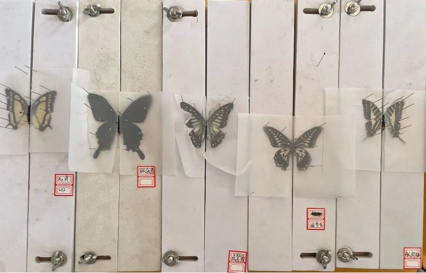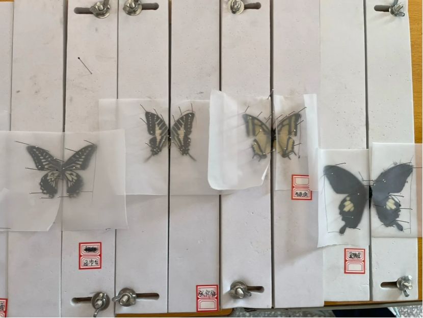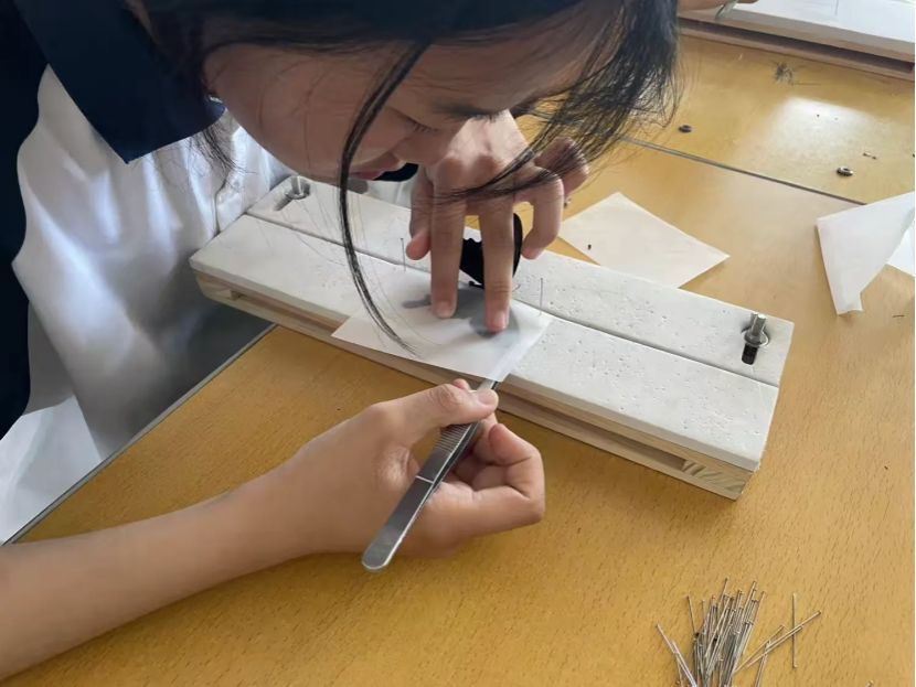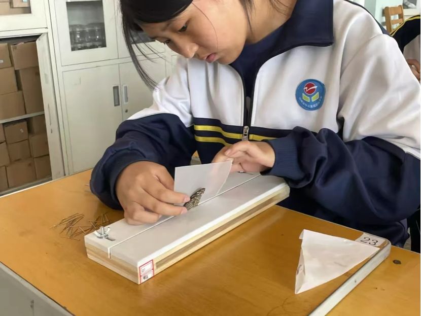 比赛现场,选手们手持镊子、展翅板等工具,全神贯注投入制作。从昆虫预处理(消毒、整姿)到展翅定型(调整翅脉角度),再到装盒封存,每一步都考验着耐心与精准度。