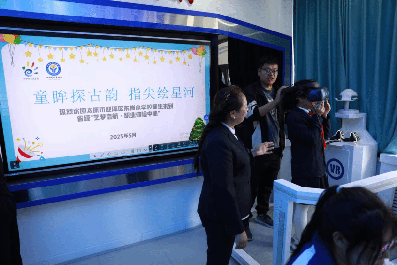 2025年5月14日,山西省贸易学校省级“艺梦启航·职业体验中心”迎来太原市迎泽区东岗小学校近百名师生,通过沉浸式互动五大特色体验项目,带领学生感受中华优秀传统文化魅力与现代科技前沿技术,为青少年播撒职业启蒙的种子。
