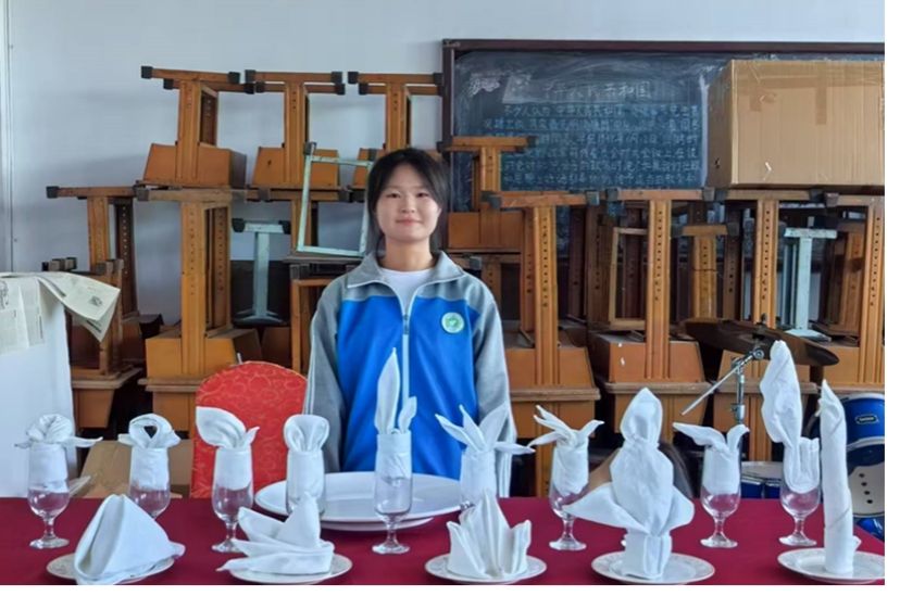 2025年5月14日,山西省农业机械化学校旅游教研室以“百褶争锋,巧手争霸赛”为主题的中餐宴会摆台之餐巾折花技能比赛在教学楼综合实训室圆满落幕。比赛以“一巾一布展匠心”为切入点,通过折花技艺的比拼,展现旅游服务与管理专业学子的精湛技艺与艺术审美,助力培养高素质技能型人才。