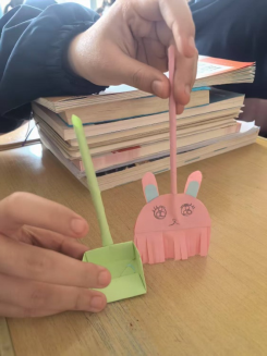 实践操作环节,教师充分发挥示范引领作用,利用彩色卡纸、剪刀、胶水、彩笔等材料,逐步演示扫把和簸箕的制作步骤,着重强调工具使用的安全规范与操作要点。学生以小组为单位开展制作,组内成员各司其职,从造型设计、裁剪粘贴到装饰美化,分工协作有序进行。在制作过程中,学生积极发挥创新思维,将传统工具造型与现代元素巧妙融合,有的制作出卡通造型的扫把,有的设计出带有精美图案的簸箕,一件件独具匠心的作品彰显出学生的创意与巧思。教师全程巡回指导,及时为学生答疑解惑,鼓励学生大胆尝试,有效锻炼了学生的动手实践能力与创新能力。