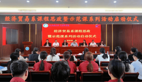 2025 年 5 月 14 日上午,山西水利职业技术学院经济贸易系课程思政暨示范课系列活动启动仪式在小店校区九楼会议室举行。学院党委书记马皖东、经济贸易系领导班子及全系教师共同参与,活动由党总支书记赵晓莉主持。 学院党委书记马皖东在启动仪式致辞中强调,本次系列活动是党建与业务深度融合的有效载体,要不断强化党建引领,夯实职业教育主阵地根基;要深化业务协同,构建产教融合育人新生态;要聚力样板支部创建,激发基层组织先锋功能。他希望各项工作要与正在开展的深入贯彻中央八项规定精神学习教育、与“六水共创”党建提升工程及师德师风建设紧密结合,着力打造一支政治素质过硬、业务能力精湛、育人水平高超的高素质教师队伍。