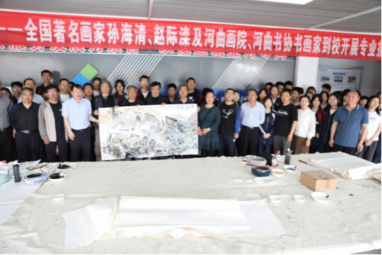 活动现场,气氛热烈而庄重。学校领导对各位书画名家的到来表示热烈欢迎与衷心感谢,并强调此次活动对推动校园文化建设、提升学生艺术修养的重要意义。随后,全国著名画家孙海清、赵际滦以娴熟的技法、丰富的色彩,描绘出一幅生动鲜活的画卷。山水画作中,峰峦叠嶂,仿佛将壮丽的山河浓缩于一纸之上,尽显大自然的生机与活力。画家们一边创作,一边耐心地向围观的师生讲解绘画技巧、构图方法和色彩运用,让大家在欣赏艺术作品的同时,也学到了许多专业知识。