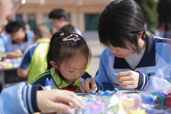 活动现场,中职学子们化身耐心的小老师,手把手地指导小学生制作手工作品。“姐姐,这个黏土怎么才能粘得更牢固呀?”“哥哥,我的灯笼形状捏得对不对?” 面对孩子们的提问,小老师们总是不厌其烦地解答,现场氛围温馨而热烈。