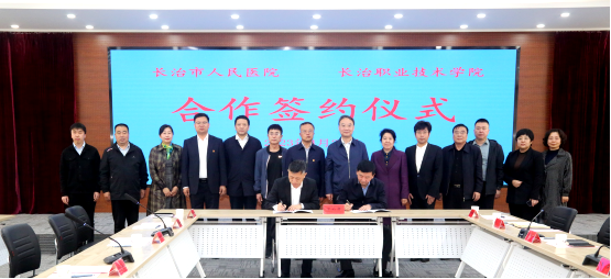 长治职业技术学院党委副书记、院长赵巨涛与市医院党委副书记、院长胡文庆签约