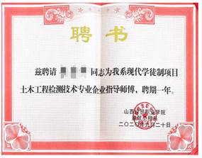 我系土木工程检测技术专业于2018年9月被列为教育部第三批、山西省第一批现代学徒制试点项目,并与同年9月完成首批招生,与山西华范工程检测有限公司签署了《现代学徒制人才培养协议》共同开展人才培养工作。目前在校生有74人(19级19人,20级26人,21级29人),其中6人参军。首届18级学生已于2021年7月完成学徒阶段正式走上工作岗位。