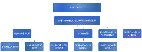 将试验员、检测员、资料员作为重点培养岗位,依据培养岗位所需工作能力及典型岗位工作流程,确定岗位所需能力、知识、素质目标,结合职业标准、行业标准、岗位规范,科学构建适应现代学徒制人才培养的专业课程体系。
