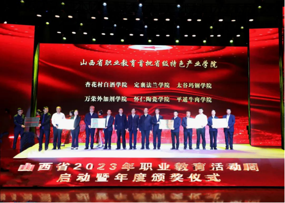5月14日,山西省2023年职业教育活动周启动仪式在太原旅游职业学院举行,省委副书记商黎光、副省长熊继军等领导出席并为获奖单位和个人授牌、颁奖,运城职业技术大学校长张辉代表学校接受“山西省职业教育特色产业学院万荣外加剂学院”授牌。这是我校首个省级授牌产业学院,由山西省教育厅、山西省人力资源和社会保障厅、山西省发展和改革委员会、山西省财政厅、山西省工业和信息化厅、山西省人民政府国有资产监督管理委员会、山西省小企业发展促进局7部门联合授牌。