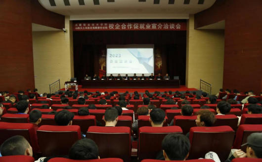 为了深化产教融合,促进学生就业创业,4月25日下午,吕梁职业技术学院与山西大土河焦化有限责任公司在学术报告厅举行2023年校企合作促就业宣介洽谈会。副院长马中华,学生处处长、招就处负责人闫文革,教务处处长陶永峰,矿业工程系主任王秉信,机电系主任郭海奎,矿业工程系党支部书记杨晓晶,山西大土河焦化有限责任公司人力资源部部长张浩毅,我校校友、贾家沟煤业安全矿长李金平,炭窑坪煤业总工程师崔世荣以及我校教师和学生代表参加了会议。
