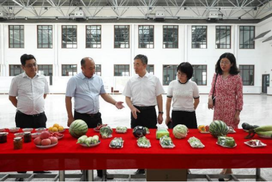 校企双方领导参观恒茂基地农产品