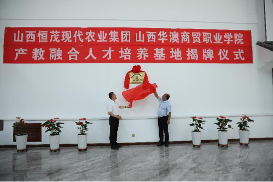 为深入贯彻党的二十大和习近平总书记关于职业教育的重要指示批示精神,切实提高职业教育的质量、适应性和吸引力,培养更多高素质技术技能人才、能工巧匠、大国工匠。为探索校地合作新模式,推进华澳学院电子商务专业助力乡村振兴,更好地为区域经济社会发展服务,2023年8月,“山西华澳商贸职业学院&山西恒茂现代农业集团”产教融合人才培养基地揭牌成立。