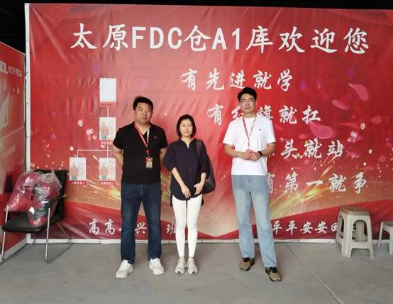郗轶君老师与用人单位——京东物流山西公司座谈,了解企业目前的岗位设置,学生实习待遇并实地考察了学生工作环境和不同岗位的工作任务,京东物流HR及FDC仓主管给与介绍岗位待遇、工作任务和工作标准和规范的说明。