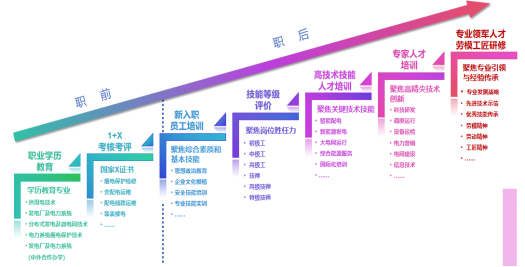 根植行业,将人才培养目标与企业人才需求紧紧地联系在一起,产教同行,教培一体,促进了学院(中心)的学历教育和企业职工培训相互支撑互补,实现了校企战略高度契合,驱动了高技能人才培养方式成功变革,打造了“教培赛评”高技能人才服务平台和职前职后深度融合的人培体系(见图7),为山西经济转型和电力事业发展提供了强大的智力支持和人才支撑。