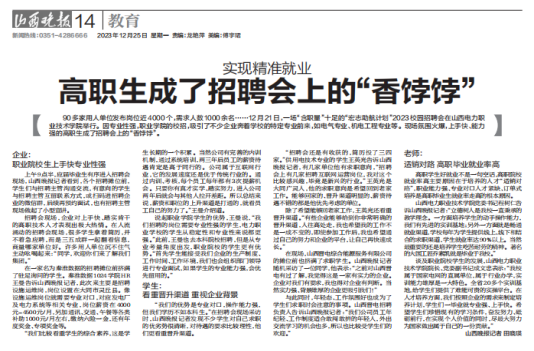 公司系统、省教育系统引发强烈反响,成为促进学生充分就业、服务山西经济转型的亮点示范。